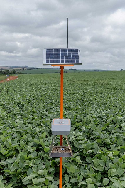 Fabio Torres, gerente de negocios de Jacto Next, explica que las trampas electrónicas inteligentes para atraer y capturar plagas funcionan de manera similar a las trampas convencionales, pero con tecnología incorporada que permite tomar fotos programadas del piso adhesivo, que contiene los insectos capturados. Las imágenes se envían a través de una conexión 4G a la plataforma EKOS, junto con otros datos importantes, como temperatura y humedad.