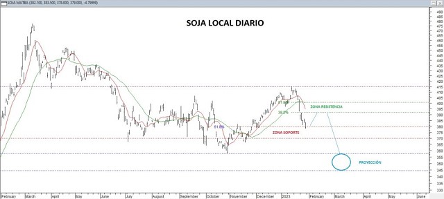Por su parte, en el plano local, dada la importante merma que se espera en la producción para el presente ciclo, mucho se especula con que los precios podrían apuntar a una recuperación en la medida que nos vayamos acercando al período de cosecha, sin embargo desde lo técnico tenemos dudas respecto de ello, porque los mercado locales ya vienen mostrando cierta vulnerabilidad.