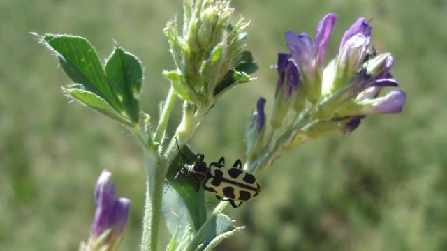 De color amarillo y negro, el siete de oro (Astylus atromaculatus) es un insecto nativo de la Argentina que, frente a los cambios en el clima de los últimos meses, registró un aumento y concentración especialmente en alfalfas en floración. Frente a casos de decaimiento, diarrea severa, cólicos y hasta muerte súbita, el Servicio de Diagnóstico Veterinario Especializado (SDVE) del INTA Balcarce –Buenos Aires– está realizando estudios para descartar otras posibles causas y recomienda evitar el consumo de forraje con elevada densidad del insecto.