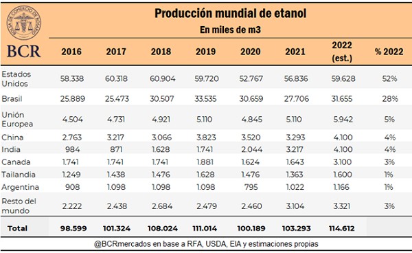 De acuerdo con el USDA, en 2022 la producción de bioetanol de maíz creció un 37% respecto a 2021, apuntalando una tendencia alcista que rompe récords año tras año. Al igual que en Argentina y Estados Unidos, el grueso de la estructura industrial del etanol está cerca de la producción maicera, fundamentalmente el Mato-Grosso.