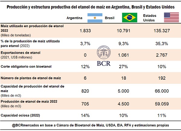 Por otra parte, Brasil tiene su mercado de etanol dominado por el bioetanol de caña de azúcar. Sin embargo, la producción del etanol de maíz viene creciendo a dos dígitos año tras año en nuestro principal socio comercial. La producción brasilera es fundamentalmente para consumo doméstico. RenovaBio es el nombre del programa que desde 2016 da cuenta de las principales políticas relativas a biocombustibles en Brasil. Si bien la actual legislación permite al corte obligatorio de bioetanol oscilar entre el 18% y el 27% de composición de los combustibles, se ubica hoy en el 27% y no cae por debajo del 20% desde el 2006.