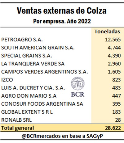 Ubicados en el cuarto lugar, la siembra de colza en argentina totalizó 25.835 ha en la campaña 2021/22, lejos de su récord histórico de más de 87.000 ha en el año 2012/13. Entre los principales desafíos hacia adelante se destaca la falta de profundización en desarrollos de tecnología, necesidades de rotación, oscilaciones climáticas y una compleja inserción en el mercado interno para la colza, de acuerdo con informes técnicos del INTA. Sin embargo, con las capacidades instaladas vigentes de la competitiva industria aceitera argentina, y sin competir en superficie con la cosecha gruesa argentina, la cadena de la colza muestra enormes potencialidades para crecer en Argentina.