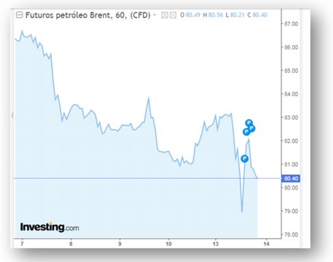 Para colmo, el precio del petróleo este lunes mostró una considerable baja. Y si observamos el gráfico, vale preguntarse ¿es posible que se haya iniciado una fase negativa.