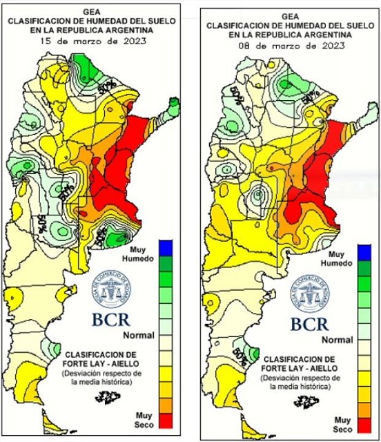 La otra variable que se acopló a la falta de agua y le dio la estocada final a los cultivos, fue la persistencia de temperaturas extremas que no cesaron desde finales de febrero. No hay registros en los últimos 100 años de una ola de calor tan larga en el tiempo - 18 días consecutivos- y con temperaturas mínimas y máximas tan elevadas. “Lo llamativo fue que las temperaturas mínimas durante este período presentaron el mismo nivel que las temperaturas máximas medias de marzo, y las temperaturas máximas estuvieron 10°C por encima de la temperatura máxima promedio para el mes. Según Elorriaga, “la buena noticia es que los pronósticos indican que a partir de la segunda quincena, el bloqueo comienza a desplazarse hacia el este y la circulación de los sistemas frontales aumenta su incursión hacia el centro del país. Esto provocará un cambio de masa de aire, un descenso generalizado de las temperaturas y el desarrollo de lluvias y tormentas que, aunque todavía erráticas y dispares, aumentarán su área de cobertura hacia el centro del país”.
