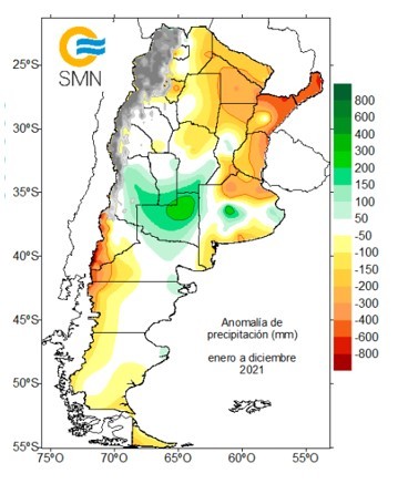 Trabajando con datos del Servicio Meteorológico Nacional hemos obtenidos datos de anomalías ocurridas en determinadas provincias del país, para ver solo algunos ejemplos. Es así que en 2021 comienzan a verse algunas áreas en las los déficits empezaban a hacer notar: