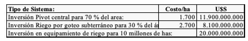 ¿Que sería necesario para suplir dichos déficits en 10 millones de has que es el área que podríamos incorporar con riego en Argentina?