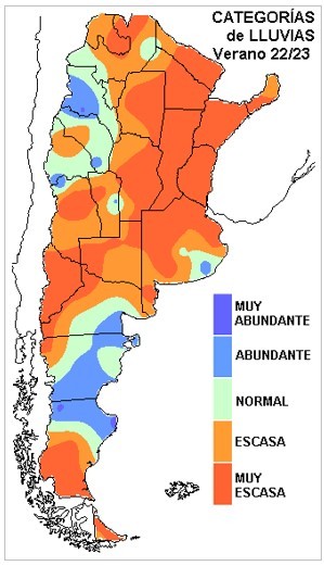 Poniendo la atención solo al comportamiento de las lluvias de verano, las anomalías del trimestre diciembre-febrero, no dejan dudas acerca del duro impacto que ha tenido el fenómeno La Niña en esta tercera aparición consecutiva. Son muy reducidas las zonas que acumularon lluvias con potencial para alcanzar valores normales. El sudeste de BA, es quizá la zona más afortunada dado que ha logrado recurrencia de precipitaciones desde la última década del mes de enero. El mapa tiene la suficiente elocuencia como para abundar en descripciones. La imagen es un argumento suficiente para justificar la debacle productiva de la gruesa.