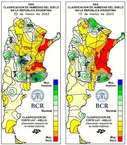 Ante la pregunta, los técnicos de Rosario responden: “las lluvias son el final del velatorio: ya enterramos la campaña 2022/23”. Explican que las lluvias le ponen final a la angustia de no saber cuánto más se podía seguir perdiendo: “antes de las lluvias, no se sabía cuánto de lo que estaba en el campo en la última semana se iba a perder. Ahora hay una idea de lo que podrá cosecharse”. Respecto a los maíces tardíos explican que el 30% de las siembras de diciembre no lograron formar espigas pero que hay otros lotes en los que, pese a que polinizaron muy mal por la falta de sincronización, ahora tienen posibilidades de alcanzar los 25 a 30 qq/ha. La mayor esperanza está puesta en las siembras de fines de enero: “si no los agarra una helada temprana, podrían dar una sorpresa y alcanzar hasta 30 qq/ha”, indican. En Marcos Juárez previo a la lluvia reportaban que todo el maíz de primera (siembras tempranas) estaba absolutamente definido y que el 80 % de lo tardío también.