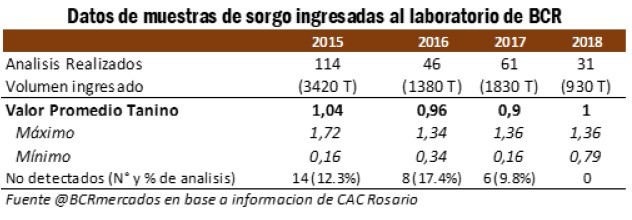 El mejoramiento genético debe trabajar en este aspecto: disminuir el contenido de taninos a tal punto de no hacer susceptible a la planta al ataque plagas. Como referencia, los datos del laboratorio de la Bolsa de Comercio de Rosario son una muestra del nivel de taninos que se presenta en la zona de inuencia a los puertos de Up River.