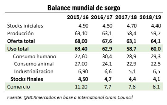 Sin embargo, la última proyección ocial de producción de sorgo 2018/19 alcanza 3,74 Mt; cifra difícil de alcanzar en un área proyectada de 770 mil hectáreas.