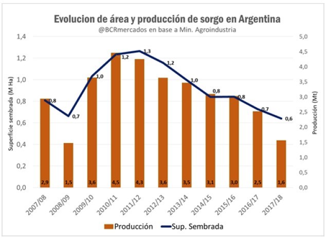 El sorgo argentino en fuerte caída