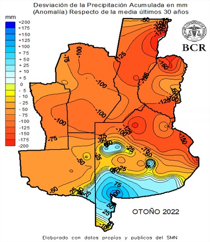 En la región pampeana, la siembra de trigo del año pasado comenzaba con el otoño más seco de los últimos 35 años: faltaban de 100 a 150 mm para llegar a las medias históricas de lluvias de la región. En particular, estaba muy afectado Santa Fe y gran parte del noreste boanerense, como se observa en la imagen. Incluso, al analizar las estadísticas por localidades, los datos mostraban que en muchos lugares se trató del otoño más seco de los últimos 60 años: en Junín era el más seco desde 1963. Por esto, comenzar el otoño con lluvias tan importantes, tanto por acumulados como por cobertura, es una señal fundamental para el próximo ciclo de trigo en Argentina.