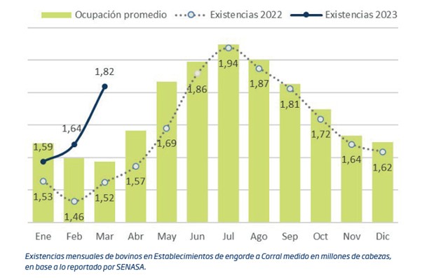 De acuerdo a los datos reportados por SENASA, 1.819.000 cabezas se encontraban alojadas en corrales de engorde al 1ro de abril de este año. Comparado con los niveles de encierre de un año atrás, este es el cuarto mes consecutivo en superar dichas marcas.