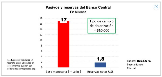 La base monetaria asciende a $5 billones y las Leliq –dinero que la gente depositó en los bancos y éstos en el Banco Central– ascienden a $12 billones.