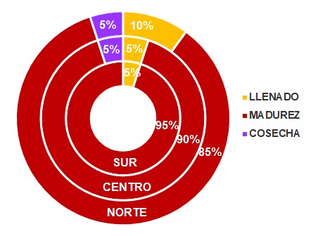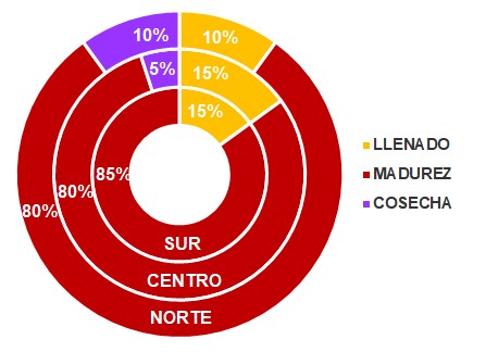El 8% de los lotes se encuentran finalizando el llenado de grano, siendo estos lotes de siembra de segunda de las zonas norte y centro.