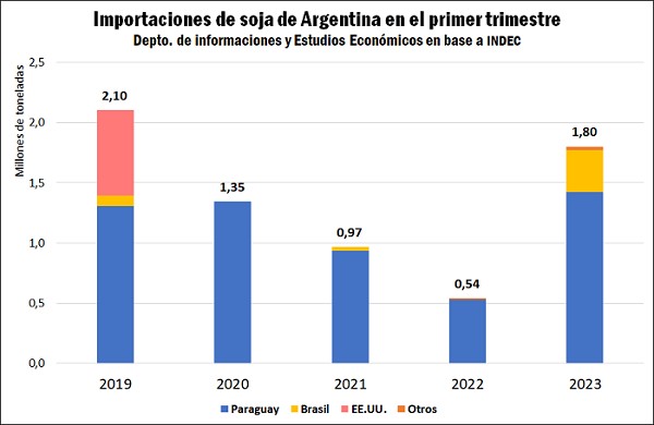 Si bien es una práctica habitual para la industria local la importación de soja desde Paraguay para moler y exportar como aceite y subproductos, que siempre es bien recibida dado que ingresa antes que la cosecha nacional y por poseer buenos niveles de proteína, el volumen ingresado este año prácticamente triplica al 2022.