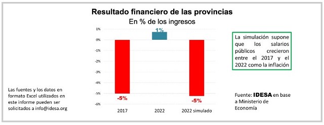 Si desde el 2017 los salarios de los empleados provinciales se hubiesen ajustado como la inflación el resultado habría sido un déficit de -5 % de sus ingresos.