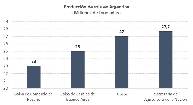 En Argentina, el clima seco que atravesó el cultivo en una gran parte de las zonas productoras afectó el rendimiento potencial y el área cosechada, con un resultado productivo menor al esperado. La Bolsa de Comercio de Rosario redujo (nuevamente) su estimación de cosecha a 23 millones de toneladas, 19,2 millones de toneladas menos que la campaña previa. La Bolsa de Cereales de Buenos Aires por su parte, presenta una reducción menor en su estimación de cosecha, ubicándola en 25 millones de toneladas. El USDA y la Secretaría de Agricultura de la Nación, presentan la mayor estimación de cosecha con 27 y 27,7 millones de toneladas respectivamente. En el caso del USDA; es probable que, en el reporte del mes de mayo, recorte la misma en vistas de lo estimado por los organismos públicos y privados locales. En todos los casos, la producción presenta una drástica a la campaña previa, ubicándola en el menor nivel en 23 años.