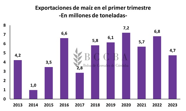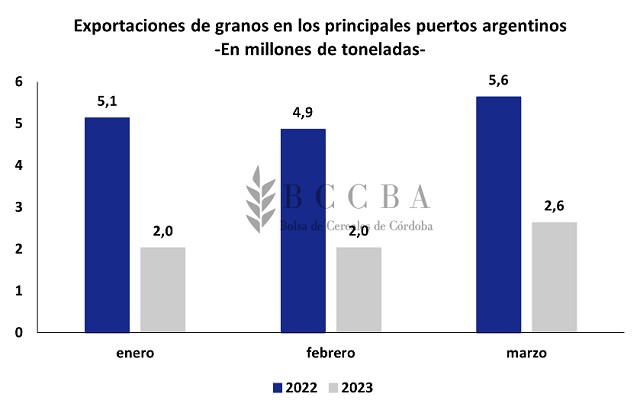 En los primeros meses del corriente año, se han exportado 4,7 millones de toneladas. Esto representa una caída del 30% con respecto al primer trimestre del 2022, que se traducen en 2,1 millones de toneladas menos.