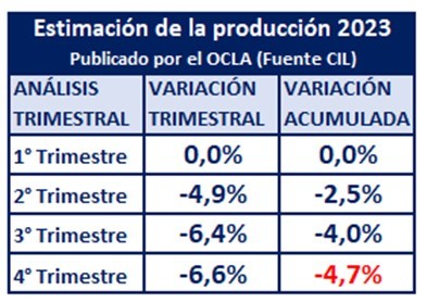 La sequía que hasta ahora persiste, difiere la oferta de pasto y obliga a asumir mayores costos, con rodeos encerrados y una mayor participación de alimentos comprados afuera del campo, con plazos de pago que se achican por la inflación. El primer trimestre cerró con la misma producción que 2022, pero es muy preocupante lo que viene ahora, con mermas crecientes y una proyección anual con una severa caída del 5%, que nos haría correr muy “de atrás” el 2024.