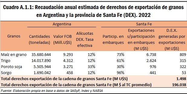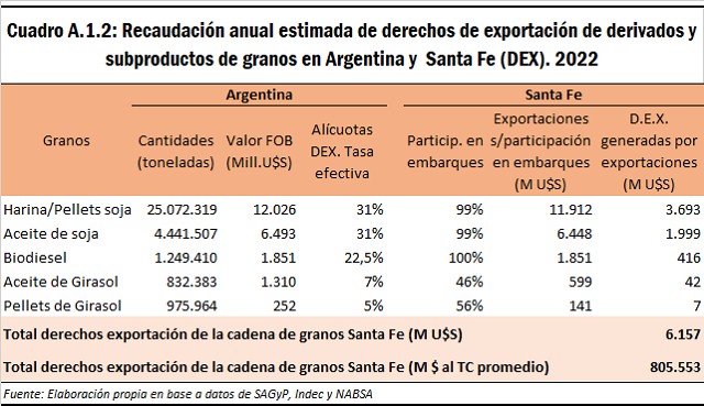 A.1. Estimación de los Derechos de Exportación por la producción de granos, aceites y subproductos de la provincia de Santa Fe (DEX).