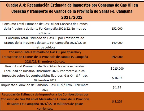 A.4: Impuesto a los Combustibles tributado por el consumo de gas oil en la Cadena de Valor de Granos de Santa Fe