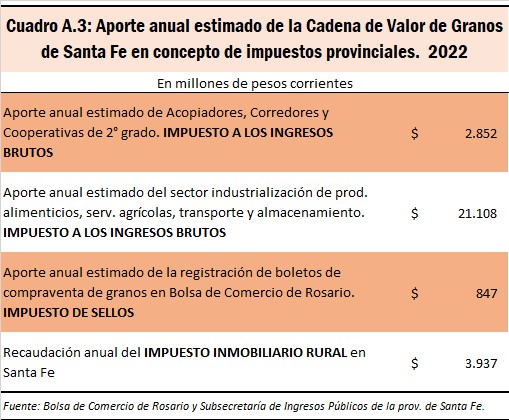 A.3 Impuestos Provinciales tributados por la Cadena de Valor de Granos de la provincia de Santa Fe