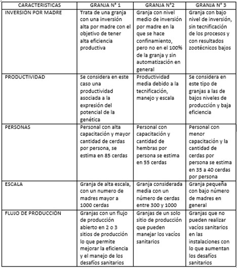 Para la estimación de costos se han clasificado a las granjas/establecimientos en 3 grandes grupos, con características diferentes: