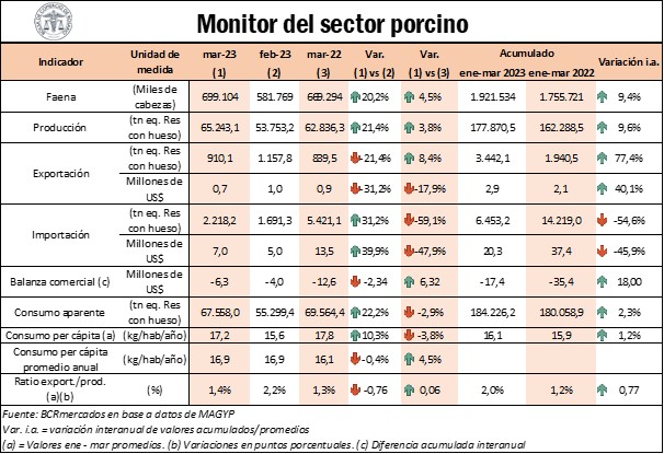 Destacado del mercado porcino: las importaciones se redujeron a la mitad en el primer trimestre de 2023, aunque la balanza comercial continúa con signo negativo