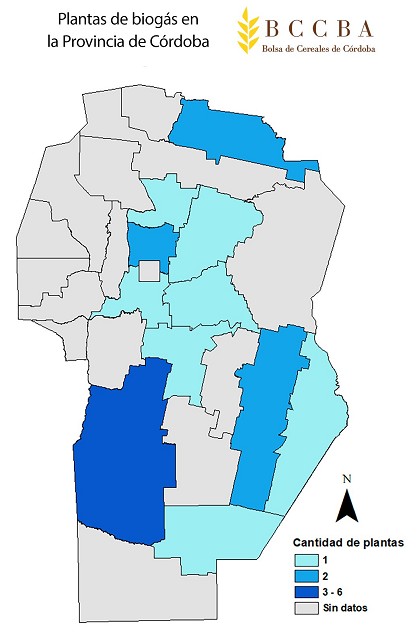 Según datos del Ministerio de Economía y el Consejo Nacional de Investigaciones Científicas y Técnicas (CONICET) en Córdoba se localizan 19 plantas que producen biogás (algunas de ellas aún no han comenzado a funcionar ya que están en etapa de construcción). Como se observa en el mapa, estas se encuentran dispersas en la provincia, sin embargo, el 32% de las plantas se encuentran en el departamento de Río Cuarto.