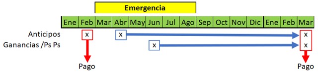 Suspensión del ingreso de anticipos correspondientes a los impuestos a las ganancias y bienes personales, cuyos vencimientos hubieran sido fijados dentro de la fecha de inicio de Emergencia y la fecha de finalización.