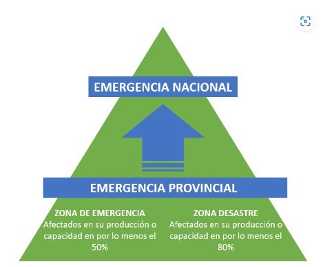 Es por lo mencionado que el certificado de emergencia provincial es la llave para acceder a los beneficios de la emergencia Nacional. Con la Resolución 5324 se establecieron los beneficios a nivel nacional e incorpora como condición necesaria y excluyente que la explotación afectada constituya la “principal actividad” del productor, siendo esta la que hubiera generado más del 50% de los ingresos del último ejercicio anual cerrado con anterioridad al periodo de emergencia o desastre.