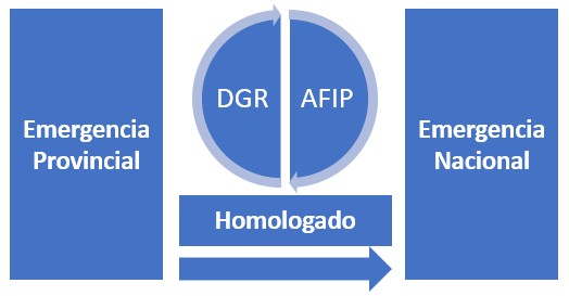 Esta ley establece que los estados de emergencia agropecuaria o zona de desastre deberán ser declarados previamente por la provincia afectada, que deberá solicitar ante la Comisión Nacional de Emergencias y Desastres Agropecuarios, la adopción de igual decisión en el orden Nacional. Es decir, las provincias impulsan la emergencia a través de la declaración de la misma mediante decretos que se complementan con las tareas de verificación y emisión de los certificados de emergencia y desde Nación se incorporan a los productores damnificados a los beneficios de orden nacional a través de la homologación de los decretos provinciales.