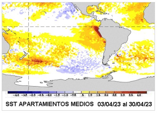 La neutralidad del indicador ENSO, se ha validado en forma consistente a lo previsto en los pronósticos. Se prevé que la situación tenga una transición rápida hacia un calentamiento de la cuenca central del Pacifico Ecuatorial, dado que las costas de Sudamérica ya están completamente dominadas por una anomalía cálida.