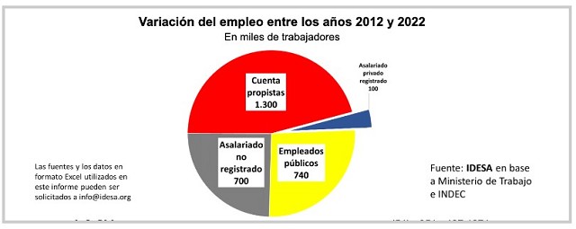 ¿En dónde se empleó la gente en la última década? Según información publicada por Ministerio de Trabajo y el INDEC se observa que entre los años 2012 y 2022: