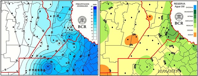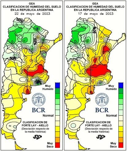 Hasta hace una semana atrás, la foto para las intenciones de trigo mostraban una caída en la siembra del 50% con respecto a la siembra del año pasado. El productor necesita sembrar, pero no hay agua suficiente en los perfiles. Si abril hubiese cumplido con la media (120 mm) de lluvias y mayo acompañado con pronósticos de tormentas, se estaría ante la proyección de una siembra récord, con casi 2 millones de hectáreas como intención para el ciclo 2023/24. Pero con solo el 30% de las lluvias de abril, hasta la semana pasada el escenario para la siembra de trigo se presentaba como el más seco de los últimos 15 años.