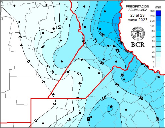Córdoba quedó al margen; solo algunas localidades del este provincial, cerca del límite con Santa Fe, recibieron lluvias por encima de los 10 mm. Monte Buey alcanzó los 16 mm y el máximo registro es el de Guatimozín con 50 mm.