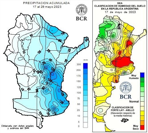 Hasta el 17 de mayo, los perfiles de los suelos en el centro de la región pampeana estaban en las condiciones más secas de los últimos 30 años. Las peores condiciones se observaban en territorio bonaerense. Las lluvias de la última semana dejaron fuera de juego a Córdoba,