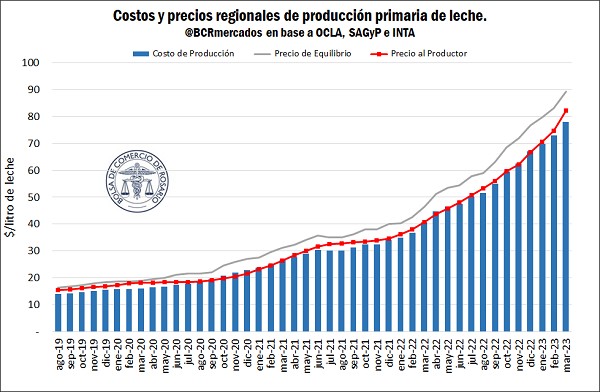 El INTA realiza informes periódicos de Costos Regionales de Producción de Leche, considerando los precios del productor por provincia (DNL – SAGyP), los costos de producción (Gastos Directos + Gastos de Estructura + Amortizaciones + Retribución Empresarial – Recuperos) y los Precios de Equilibrio (Costo de Producción + Costo de Oportunidad al Capital). En base a los mismos, se observa que en los últimos años el precio al productor por litro de leche se encuentra por debajo del precio de equilibrio y que apenas se logra cubrir el costo de producción. Incluso, el año pasado, en noviembre y diciembre, los costos de producción superaron los precios recibidos por el productor.