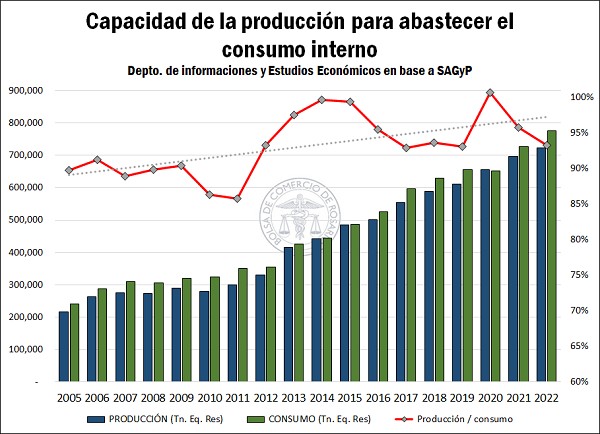 El aumento productivo no alcanza para satisfacer la demanda interna, por lo que se debió importar entre 30.000 y 40.000 toneladas anuales en el último lustro para satisfacer las necesidades de consumo. Sin embargo, el gap entre el consumo y la producción se va achicando cada vez más, y con ello se abre una veta para el desarrollo exportador. A principios de los 2000, la producción interna alcanzaba a cubrir apenas un 75% de lo que se consumía a nivel local, mientras que en los últimos cinco años este porcentaje alcanza ya el 95% en promedio.