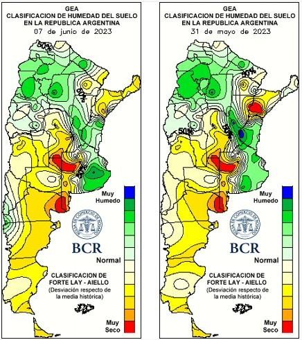Elorriaga explica: “los modelos de pronóstico indican que en la segunda década de junio, las lluvias seguirán reticentes y predominarán las irrupciones de aire polar. Habrá un abrupto cambio a condiciones invernales. El comportamiento atmosférico frío y seco y la distribución de lluvias típica del invierno sella el destino de la franja oeste mediterránea”. Agrega el consultor que “con condiciones de neutralidad en el Pacífico y lluvias dentro de las normales estacionales, el gradiente negativo de humedad que se ha establecido entre el este y el oeste no tiene posibilidades de modificarse”.