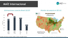 El avance de cosecha cubrió el 93,8 % de la superficie apta, estimando una producción acumulada de 19,5 MTn. Restan por recolectar unas 855 mil hectáreas, un 51 % de dicha superficie se concentra entre las regiones del NEA y Sudeste Bonaerense. Se espera que durante los próximos días finalicen las labores de cosecha. El rinde medio nacional es de 15,14 qq/Ha, lo que representa una caída del 45,7 % respecto a la previa campaña (2021/22: 27,9 qq/Ha). Mantenemos nuestra proyección de producción en 21 MTn.
