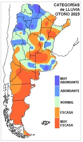 Comparando las lluvias del trimestre marzo-mayo con los valores estadísticos (1973-2022), se define la anomalía de este período. En el mapa se reconoce con facilidad el fuerte impacto de las lluvias muy por debajo de las normales en la parte oeste de la zona núcleo. Si bien esta anomalía es más extendida, la recuperación sobre el noreste bonaerense y parte del sur de SF está, no como para lograr completar valores normales pero si como para encarar siembras con un riesgo controlado.