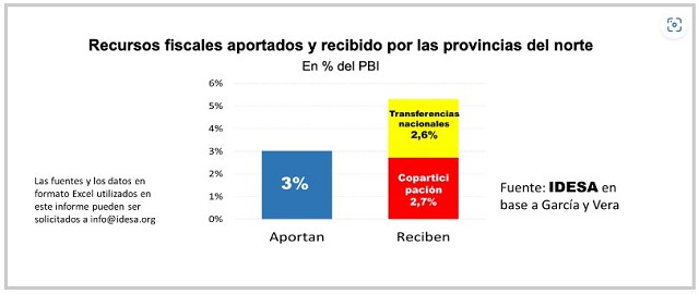 Para indagar en las respuestas hay que partir de la regla de que en Argentina el 85% de los impuestos que paga la gente se centralizan en el Estado nacional. Desde allí, los recursos fiscales se distribuyen a las provincias por la vía de la coparticipación, las transferencias discrecionales y los gastos que ejecuta de manera directa el gobierno nacional en las provincias. Según el estudio https://idesa.org/cuales-son-las-provincias-que-ganan-y-cuales-las-que-pierden-con-las-intervenciones-de-la-nacion/ de Garcia L. y Vera, L. se observa que, en el año 2022, las provincias del norte argentino: