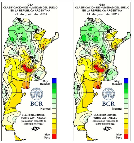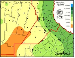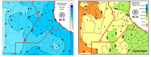 Había mucha expectativa puesta en lo que ocurriese de marzo a junio con las lluvias, ya que eran el puntapié para el inicio de la nueva campaña. Contrariamente a lo esperado las reservas de agua del suelo en el 60% de la región distan mucho de estar en condiciones adecuadas. Las temperaturas muy por encima de las habituales en toda la primera parte del semestre frío y la dispar distribución de las lluvias provocaron una mejora selectiva de la humedad edáfica.