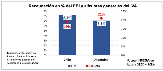 Esto implica que, con la alícuota que Argentina tiene, podría recaudar 9% del PBI si lograra la eficiencia en la recaudación que tiene Chile.