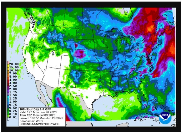 De hecho, el cuadro provisto por el NOOA, muestra, para los próximos 7 días, lluvias no demasiado considerables.