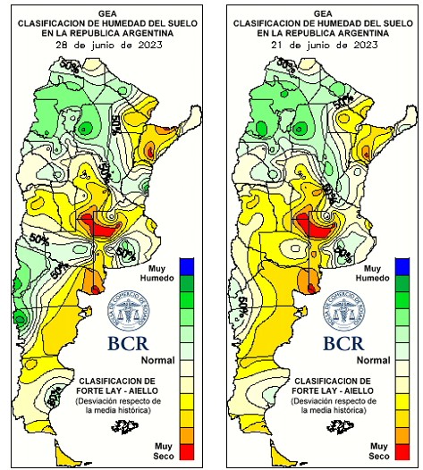 “Los pronósticos de corto plazo muestran una baja probabilidad de lluvias en los próximos días. Estas podrían darse sobre el este bonaerense y con valores moderados”, explica Elorriaga. “Hay una inestabilidad atmosférica muy alta”, advierte el consultor. Para el domingo 2 de julio, la llegada de un sistema frontal frío aumenta la probabilidad de precipitaciones en la región núcleo. Pero las condiciones tienden a mejorar hacia la noche del mismo día. Por otro lado los productores de la franja oeste de la región explican que “Tendría que llover 40 a 50 mm para que vuelva a sembrarse y sumar área triguera”.