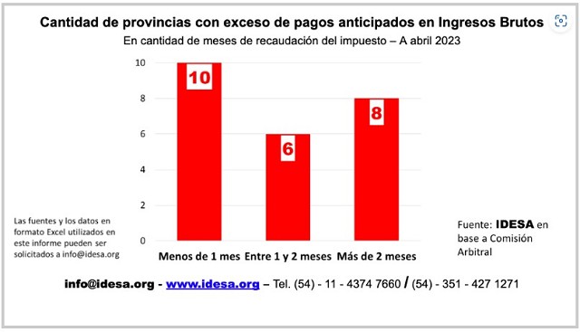 Como agravante, las provincias usan de manera abusiva los pagos anticipados. Para dimensionar la situación, con datos de la Comisión Arbitral para contribuyentes de Convenio Multilateral (los que tienen ventas en más de una provincia) se observa que: