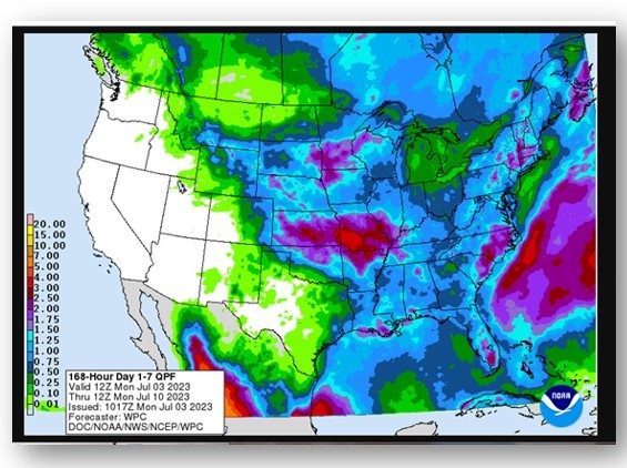 Los extendidos para 6 a 14 días hablan de lluvias por arriba del nivel normal para esta época del año, en las principales áreas agrícolas de este país.